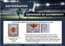 Brand new official Manchester United pennant hand signed in permanent black marker by members of the 2019-20 1st team squad. The pennant was signed within Manchester United FC and comes complete with official hologram and authenticity code and hand written compliments slip. Autographs include (squad numbers in brackets): Lee Grant (13), Jesse lingard (14), Diogo Dalot (20), Sergio Romero (22), Mason Greenwood (26), Angel Gomes (28), Aaron Wan-Bissaka (29) + one unidentified. The compliments slip received with the pennant states that the autographs include Anthony Martial and Andreas Pereira however we do not agree with this. As we did not receive an official COA with this pennant we will include a COA issued by Footy Autographs and a signature map to help identify the autographs.