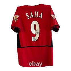Own a piece of Old Trafford history with this signed Manchester United shirt by Louis Saha - a powerful striker who played a key role in United's early 2000s attack. This shirt is personally signed by Louis Saha, celebrating his time at Manchester United between 2002 and 2004. Brand new and never worn, but please note there is visible discolouration to the sleeve patches (as pictured).